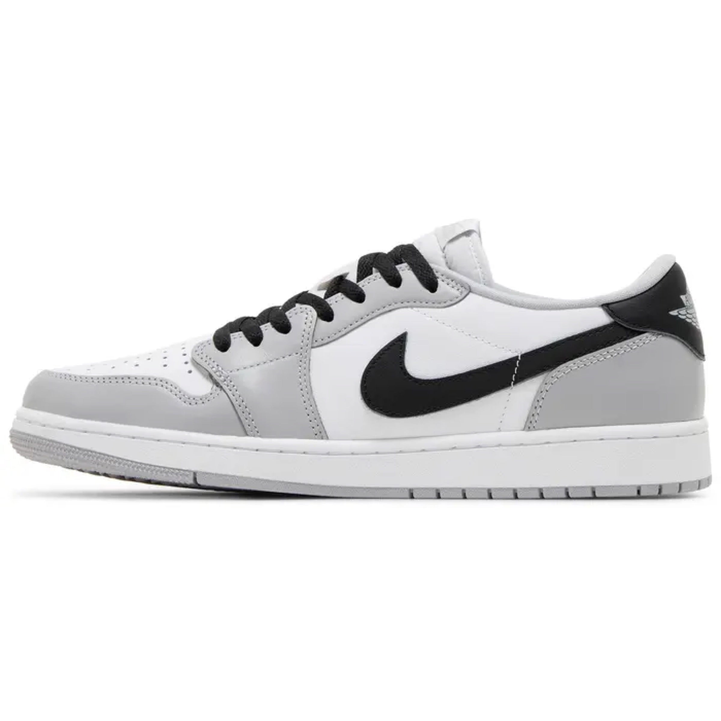 The Air Jordan 1 Retro Low OG 'Barons' celebrates the 30th anniversary of Michael Jordan's time with the Birmingham Barons, the Double-A minor league affiliate of the Chicago White Sox. Smooth leather construction is utilized on the upper, featuring a white base with grey overlays at the forefoot and heel. Black leather accents land on the signature Swoosh and back tab, marked with the iconic Wings logo. Undergirding the sneaker is a rubber cupsole with encapsulated Air-sole cushioning in the heel.