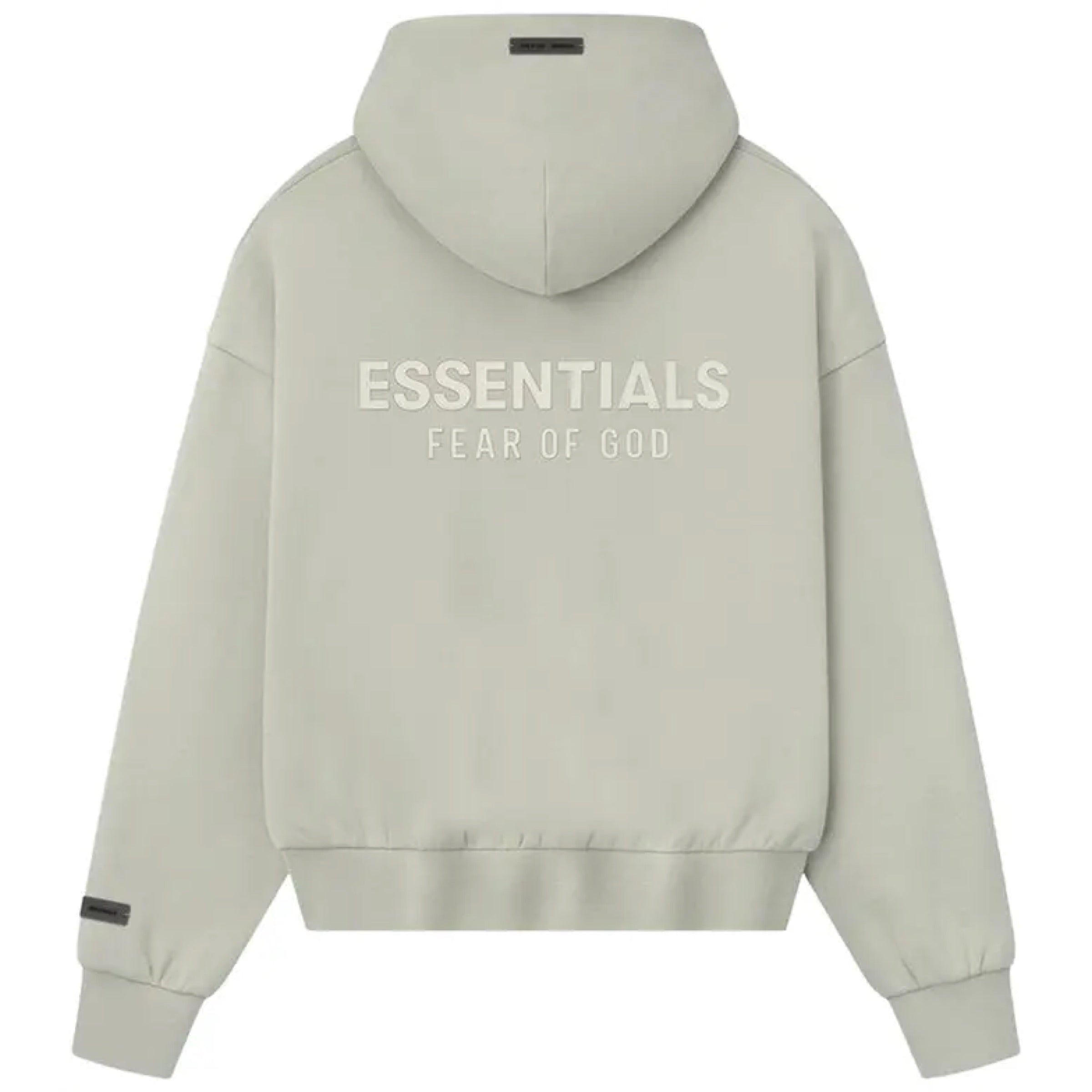 The Classic Zip-Up Hoodie is made from 380gsm core fleece to provide ideal comfort and structure. The zip-up hoodie style features a classic fit with signature Fear of God relaxed proportions. A new beveled metallic "Essentials Fear of God" logo is branded across the back. Details include a double-layer hoodie, rib-knit cuffs, waist-hem, and a kangaroo pocket. A "Fear of God Essentials" rubberized label is stitched on the hood and sleeve.