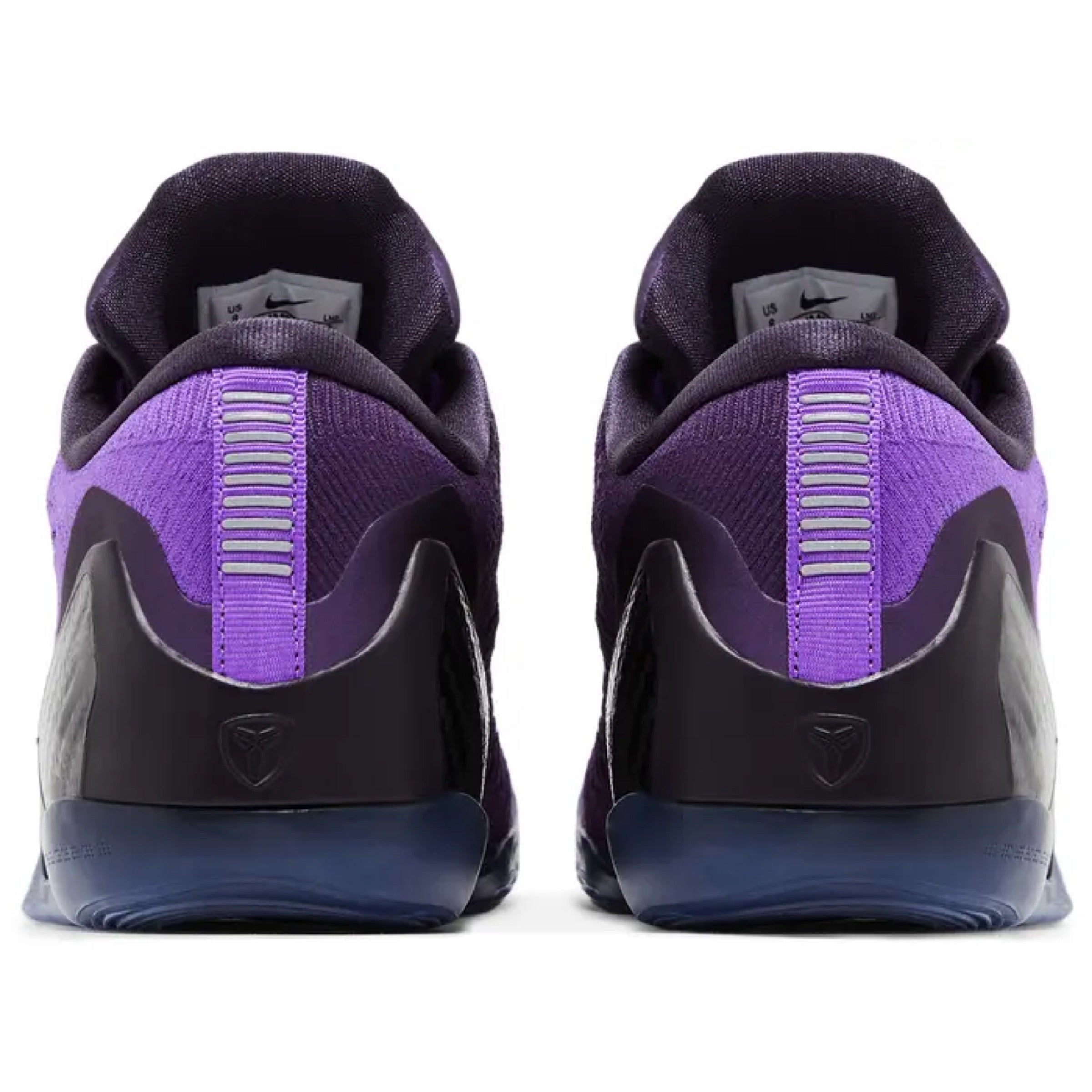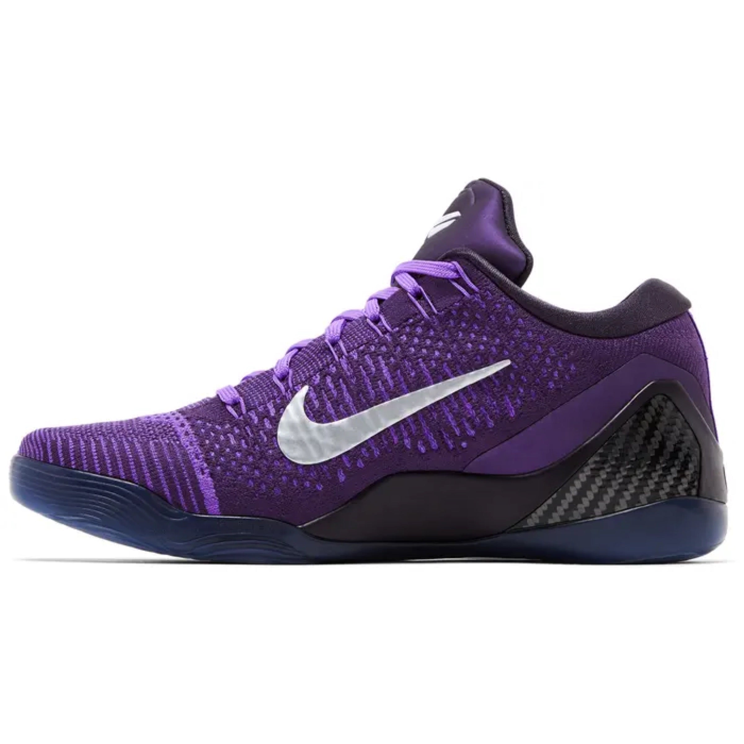The 2025 edition of the Nike Kobe 9 Elite Low Protro 'Moonwalker' brings back a classic colorway inspired by Michael Jackson. Built with purple Flyknit, the upper features a padded low-cut collar and Dynamic Flywire cables for a lockdown fit. Branding elements include a metallic silver Swoosh and Kobe Bryant's sheath logo atop the tongue. The midsole features carbon fiber paneling for lightweight support, while a drop-in React foam insole provides lightweight cushioning. Underfoot, a translucent rubber outsole reveals a unique moonrock graphic.