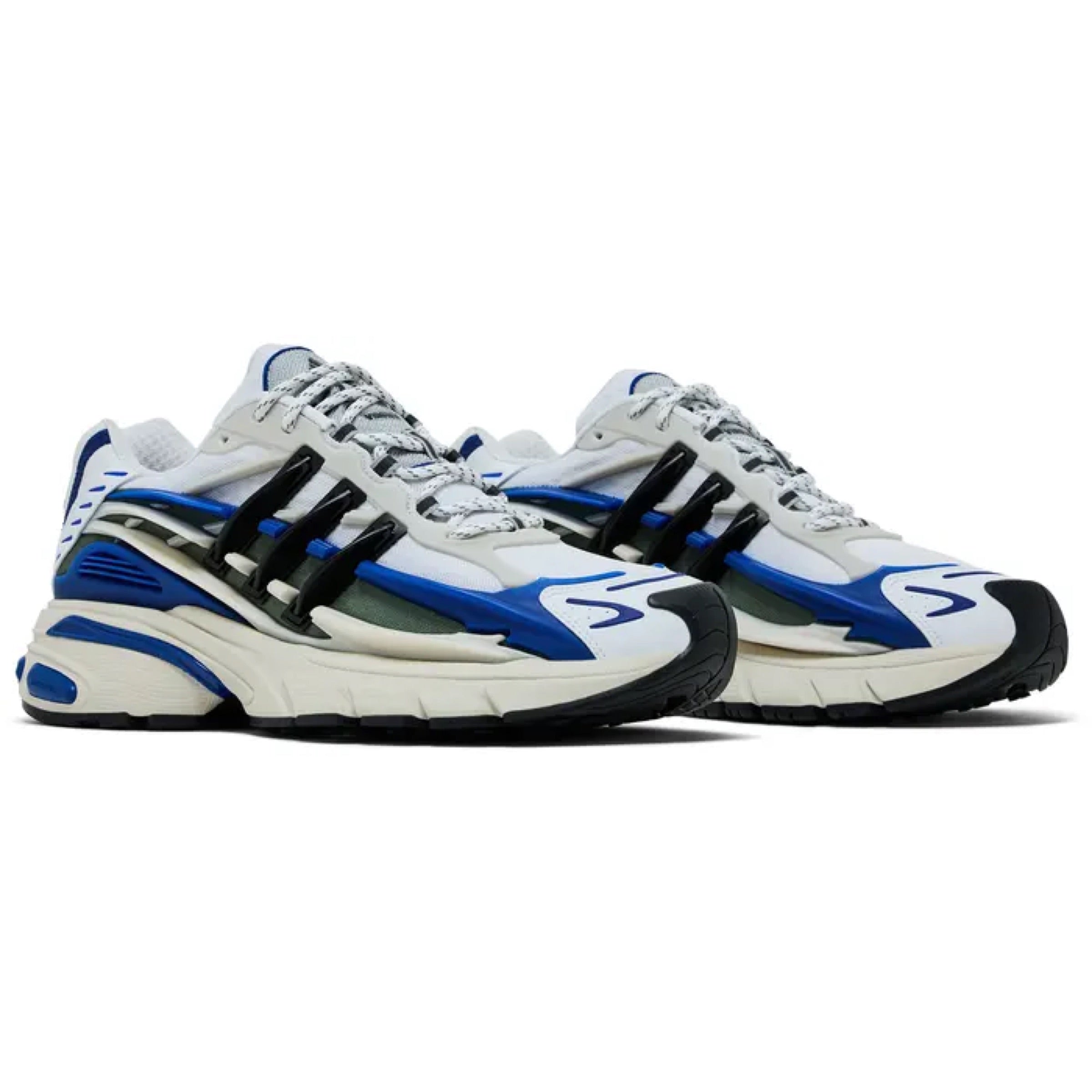 The Pharrell Williams x Adidas Adistar Jellyfish 'Royal Blue' serves as a vibrant expansion of Pharrell’s latest performance-driven collaboration with an upper constructed from a lightweight, breathable mesh base, layered with cream and grey synthetic overlays that add structure and depth. Royal blue and black Three Stripes energize the quarters, while Pharrell’s signature touches “VIRGINIA” branding, Jellyfish logos and two‑tone laces reinforce the collaboration’s distinctive identity. The padded tongue integrates seamlessly with the exaggerated form, balancing comfort with the sneaker’s sculptural proportions.