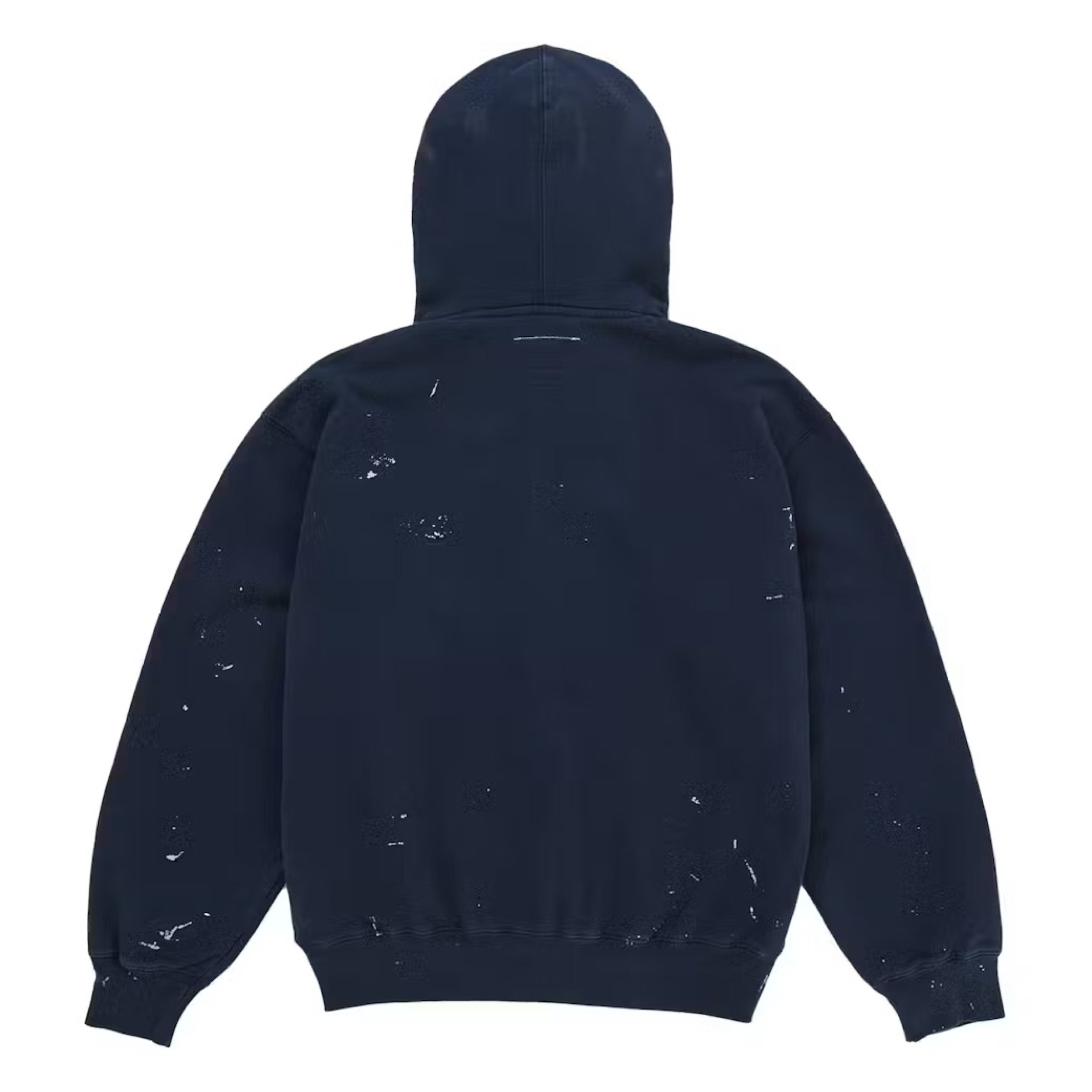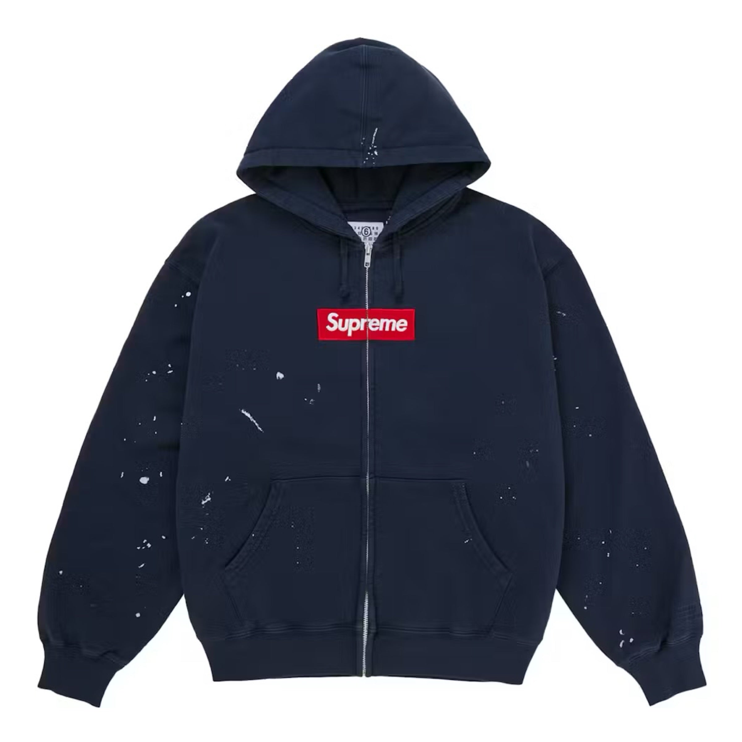 Supreme MM6 Maison Margiela Box Logo Zip Up Hoodie - Navy Brushed-back fleece with printed paint splatters throughout. Full zip... Read more
