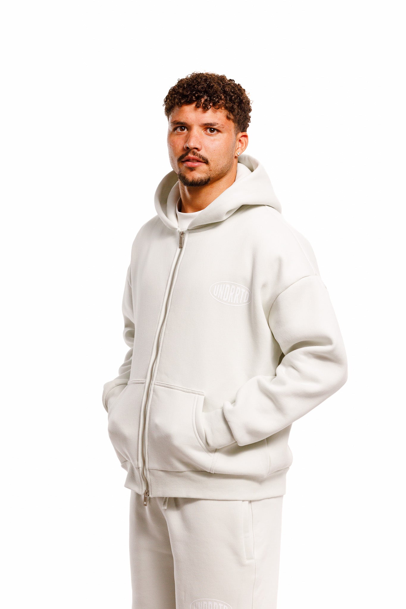 Experience comfort redefined with the UNDERRATED Stamp Zip Hoodie. Defined by a minimal UNDRRTD stamp logo at the chest and an oversized version across the back, the design balances subtle branding with strong presence. A classic UNDERRATED logo runs along the sleeve, adding a layered identity without overpowering the piece.